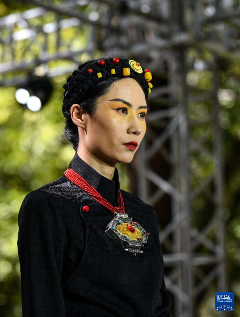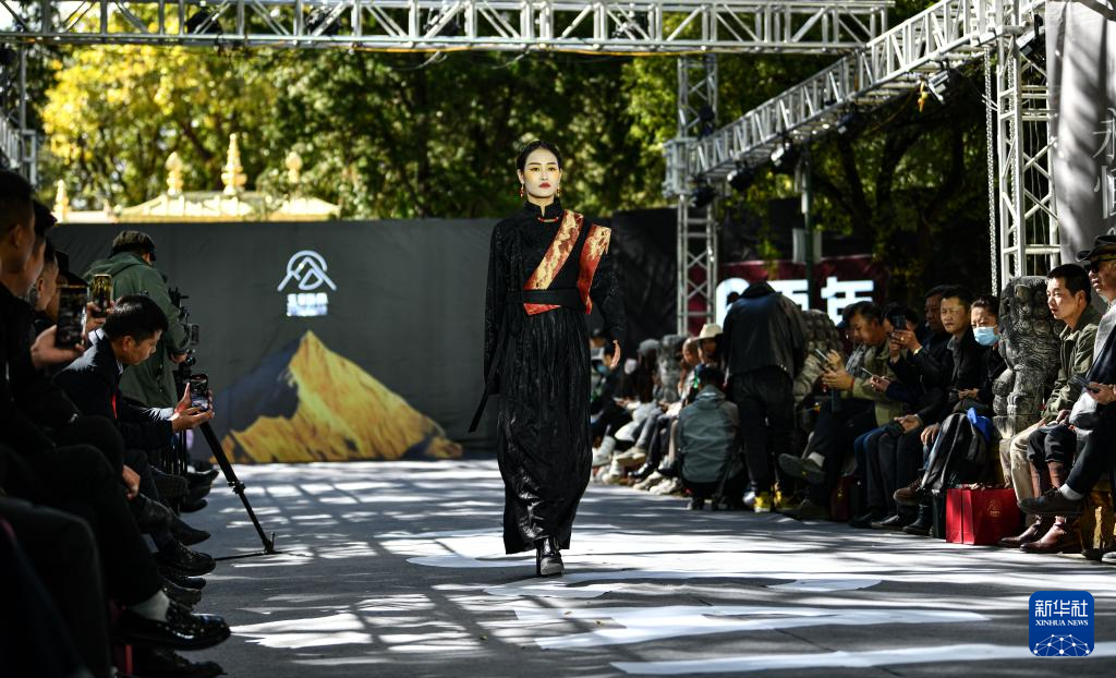 10月21日,模特在時裝發(fā)布會上展示創(chuàng)新藏裝。新華社記者 晉美多吉 攝 ??