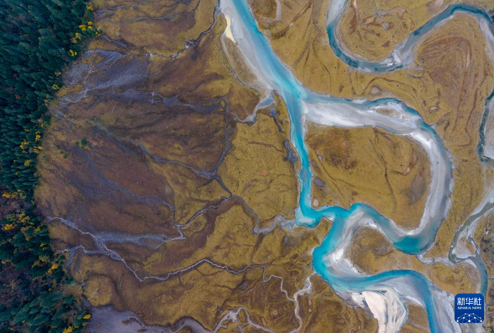這是在林芝工布江達(dá)縣拍攝的景觀(無(wú)人機(jī)照片,10月28日攝)。新華社記者 姜帆 攝