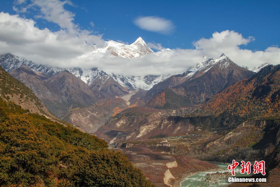 南迦巴瓦峰位于西藏自治區(qū)林芝市,海拔7782米。是西藏林芝地區(qū)最高峰,屬于喜馬拉雅山脈。南迦巴瓦峰山形獨特,因其巨大的三角形峰體終年積雪,云霧繚繞,所以也被稱為“羞女峰”。雅魯藏布大峽谷位于南迦巴瓦峰腳下,它是世界上最大、最深的峽谷。圖為11月14日,從雅魯藏布大峽谷旅游景區(qū)內(nèi)觀賞南迦巴瓦峰景色。貢確 攝