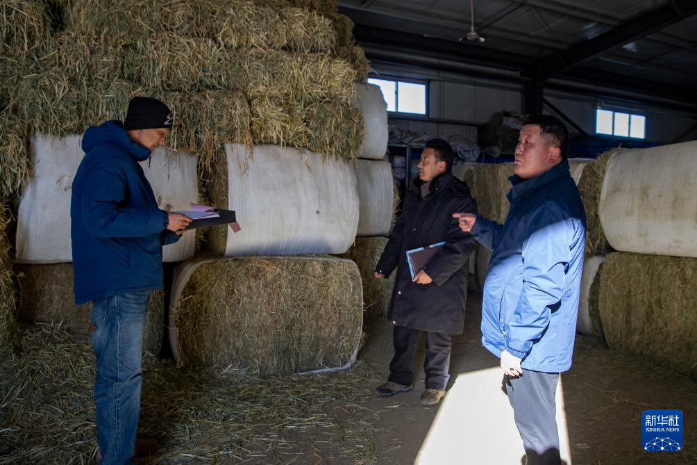 當?shù)馗刹吭诙砭绵l(xiāng)農(nóng)牧業(yè)防抗災(zāi)物資儲備庫里盤點物資庫存。這里草料、爐子、棉服、煤炭、除雪工具等一應(yīng)俱全(12月18日攝)。新華社記者 姜帆 攝