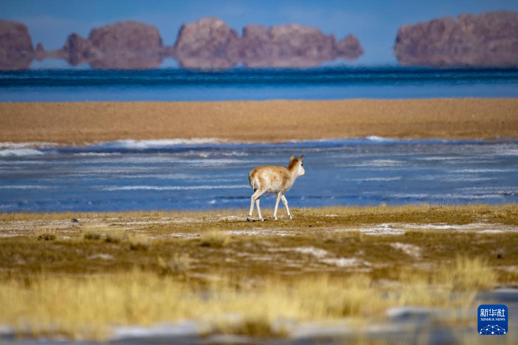 這是在色林錯(cuò)湖畔拍攝到的藏羚羊(1月5日攝)。新華社記者 旦增尼瑪曲珠 攝