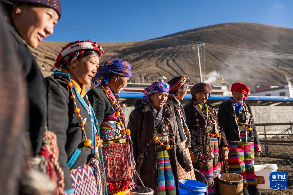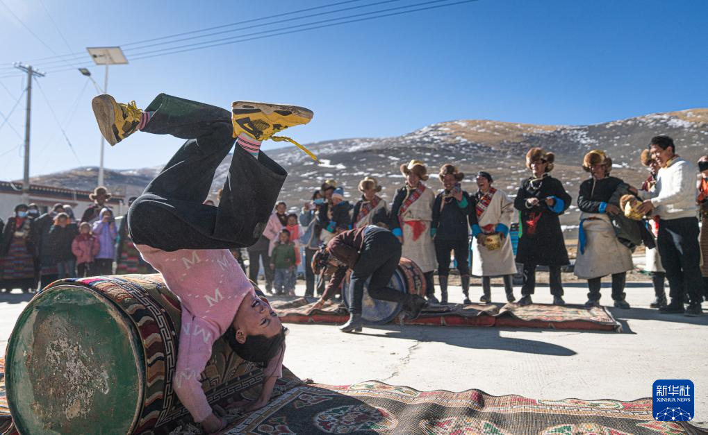 1月13日,時(shí)值西藏日喀則一帶傳統(tǒng)的農(nóng)家新年大年初二。坐落于群山間的日喀則市白朗縣東喜鄉(xiāng)思古龍村,延續(xù)傳統(tǒng)習(xí)俗,舉行擠牛奶、擲牛角等傳統(tǒng)文體比賽和翻桶接力賽等娛樂活動(dòng),以此慶祝新年。