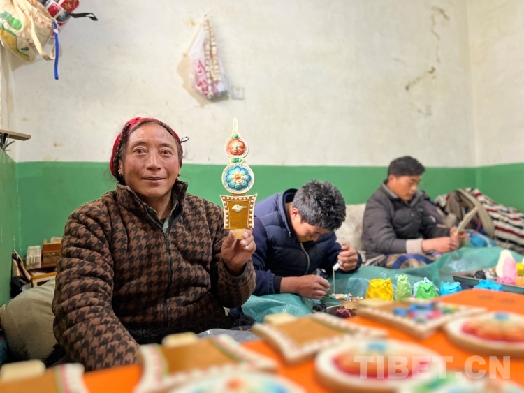 頓珠制作酥油花有近30年的時(shí)間,他告訴記者,在他的家鄉(xiāng),酥油花制作技藝是大多數(shù)人從小就掌握的技能,而且代代相傳?!懊磕瓴貧v新年前期,我都會(huì)帶著兒子們過(guò)來(lái)捏制、銷售酥油花,銷量很好,是一筆不錯(cuò)的收入?!?/p>