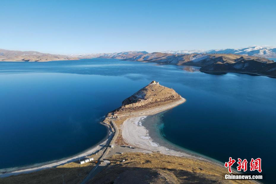 西藏自治區(qū)山南市羊卓雍錯(cuò)(簡(jiǎn)稱(chēng)羊湖)藏語(yǔ)意為“碧玉湖”,湖面海拔4441米,與納木錯(cuò)、瑪旁雍錯(cuò)并稱(chēng)西藏三大“圣湖”。近日,中新網(wǎng)記者自駕羊卓雍錯(cuò)看到,周邊部分山體被積雪覆蓋,湖水更顯深藍(lán),航拍視角下像巨大的藍(lán)寶石鑲嵌在高原大地,風(fēng)光壯麗。在羊卓雍錯(cuò)湖畔,記者還偶遇藏原羚、赤狐等野生動(dòng)物,盡顯高原生態(tài)之美。圖為西藏羊卓雍錯(cuò)日托寺風(fēng)光。江飛波 攝