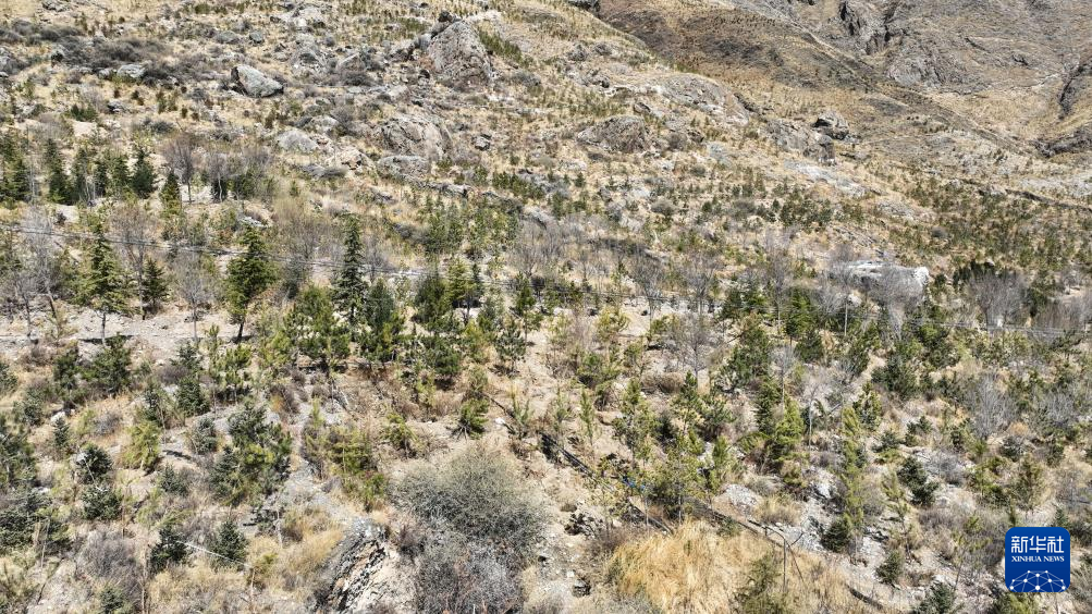 這是3月12日在西嘎山上拍攝的樹木(無人機照片)。新華社記者 田金文攝 ??