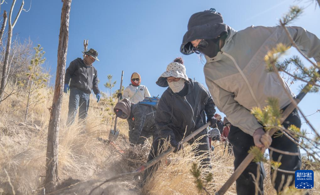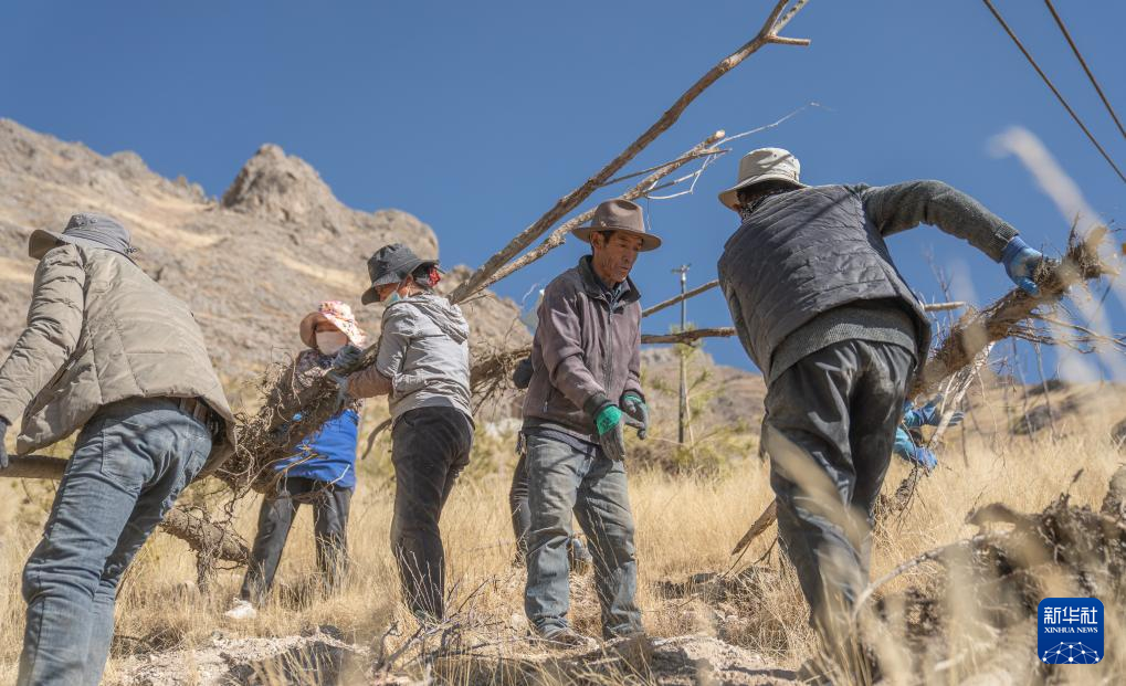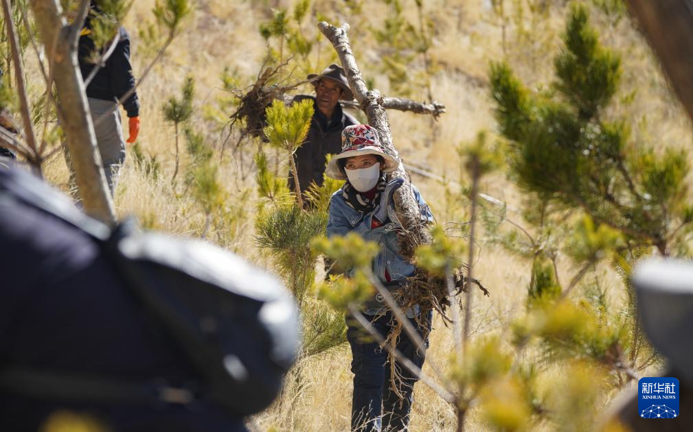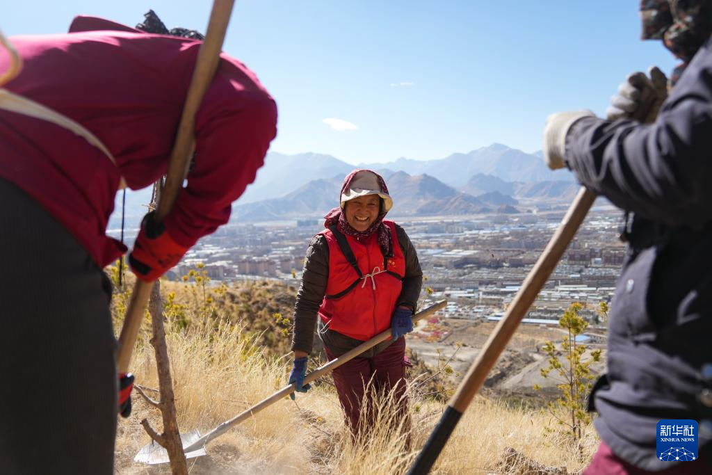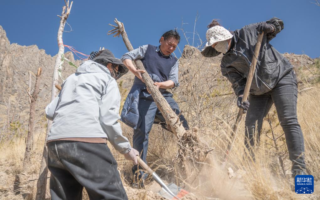 3月12日,東嘎社區(qū)二組村民在植樹。新華社記者 丁增尼達 攝 ??