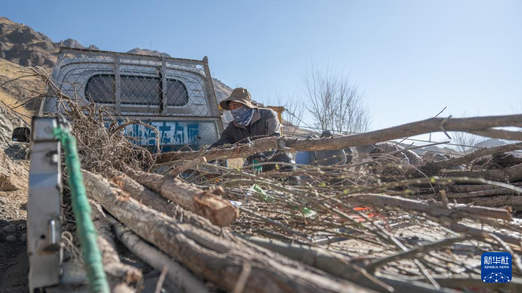 3月12日,東嘎社區(qū)二組村民在搬運樹苗。新華社記者 晉美多吉攝 ??