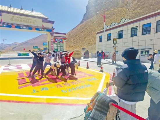 圖為珠峰北大門,游客打卡拍照。記者 楊子彥 扎西頓珠 攝