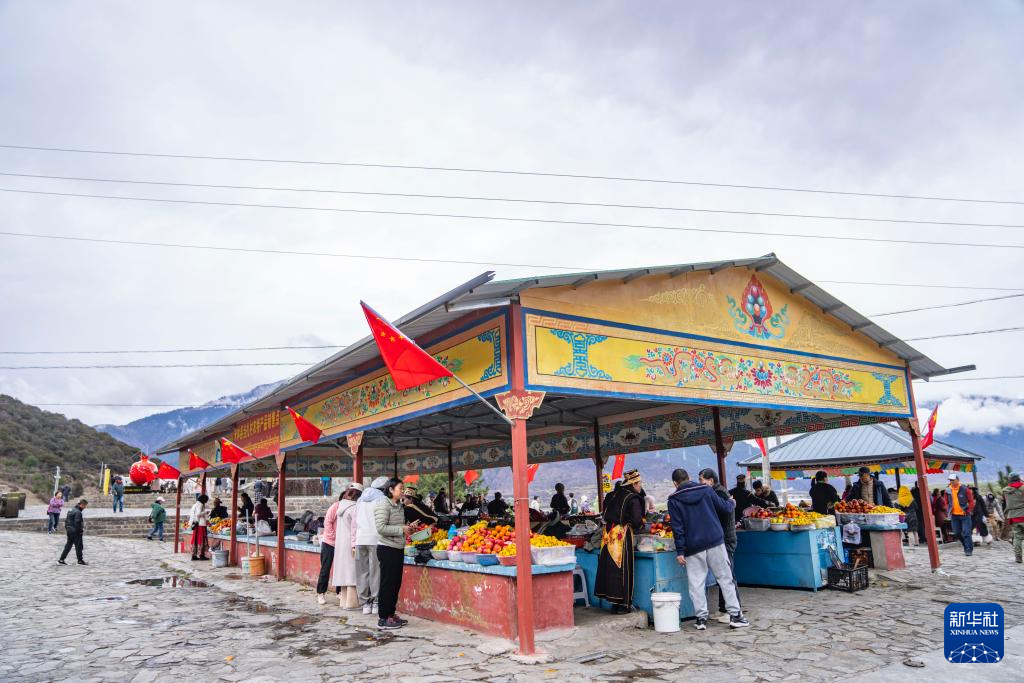 沿著219國道途經(jīng)西藏林芝米林市羌納鄉(xiāng)羌渡崗村時,尼洋河與雅魯藏布江交匯的壯美景觀令人駐足,成為許多游客的打卡點。勤勞的羌渡崗村婦女們,在這里擺起水果攤,還賣起了甜茶、青稞餅,吸引了眾多遠(yuǎn)道而來的游客。