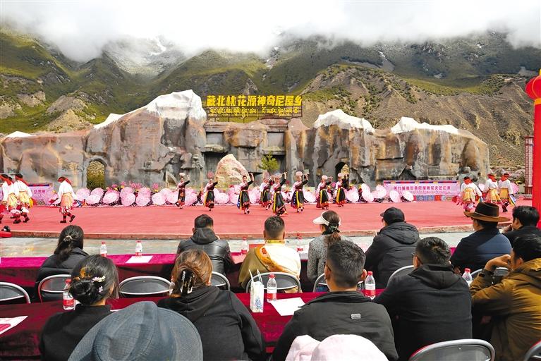 近日,尼屋鄉(xiāng)第三屆“鄉(xiāng)村振興 那曲奮進”活動成果展暨那曲市嘉黎縣尼屋鄉(xiāng)第九屆桃花文藝匯演活動舉辦,來自全國各地的游客與當?shù)厝罕娨黄鹩^看表演,現(xiàn)場氣氛熱烈。