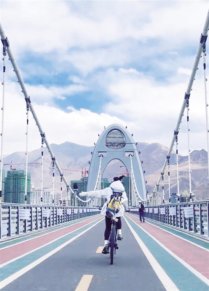走訪過程中,記者了解到,當前市民熱衷騎行出門的原因不一,或考慮性價比,或是為了圓兒時的騎行夢,但更多的是為欣賞春日的拉薩街頭風光。微風中搖曳的嫩柳,街道上被車流帶起的紫葉李花瓣,混著花香與泥土清香的空氣……在閉塞的車窗中,人們或許會因復(fù)雜的路況、不斷調(diào)換的擋位與堵車的煩悶而錯過這些近在咫尺的春景,但騎行不會?!斑@么美的春日,我可不想只在車窗里感受它?!笔忻顸S沐薇說。