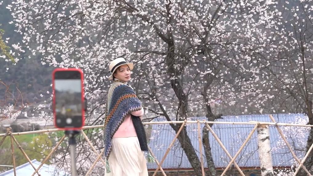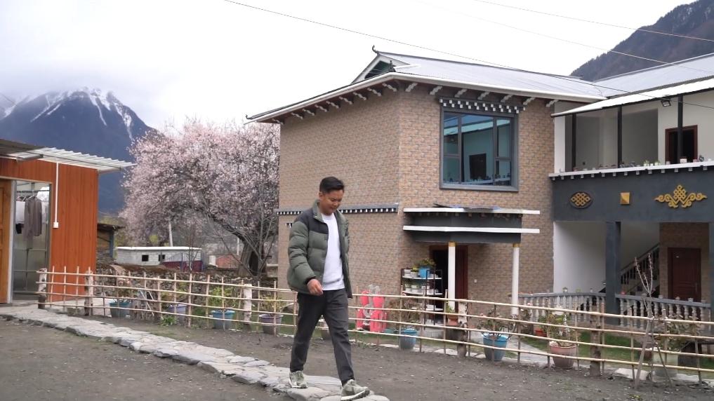 下午4點(diǎn),林芝市波密縣傾多鎮(zhèn)古通村,遠(yuǎn)來的游客入住到村民洛松頓珠開辦的民宿。寬敞的客廳里,藏式家具整齊大氣,窗外古老的桃花樹隨風(fēng)散落著陣陣花雨。