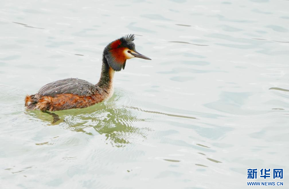 游弋在虎頭山水庫里的鳳頭 (4月24日攝)。新華社記者 張汝鋒 攝