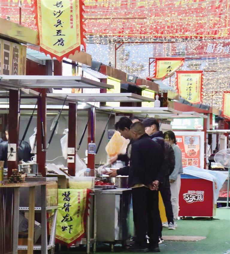 夜幕降臨,拉薩的街頭巷尾燈火璀璨如星辰,納金路萬達(dá)廣場的金街上,熱氣騰騰的煙火氣也在霓虹閃爍中氤氳出了熟悉的味道,美食為夜生活增添了不少驚喜。