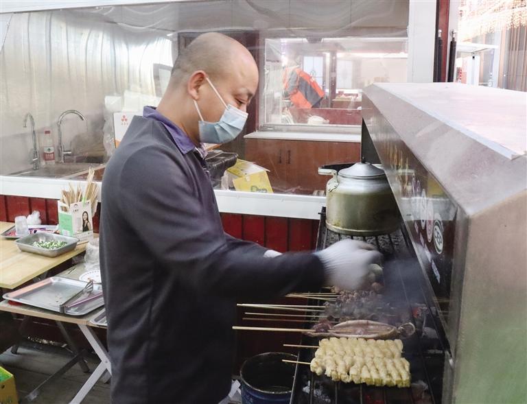 “在明亮寬敞的商場里逛得有些審美疲勞,但又實(shí)在留戀夏夜的舒適,所以才來到商場外的金街上,在大大小小的宵夜攤前一邊品嘗著各種美食,一邊談天說笑,感受獨(dú)屬于鬧市的人間煙火。”市民達(dá)珍開心地說。