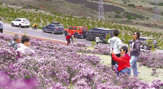 圖為游客在杜鵑花海中玩賞。記者 萬(wàn)慧 攝