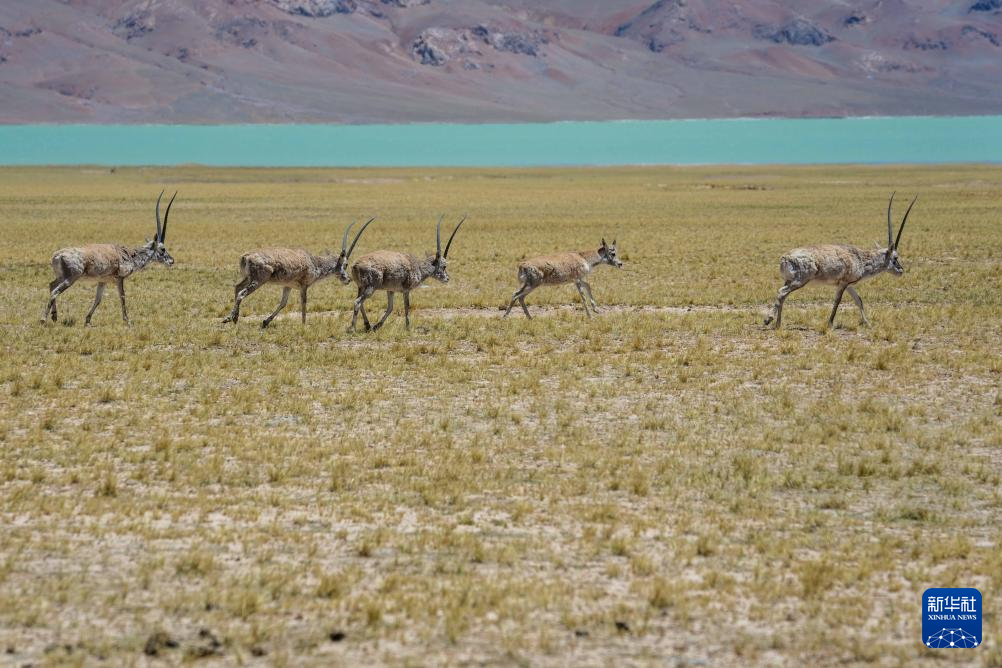 幾只公藏羚羊守護(hù)母羊遷徙之路(6月12日攝)。新華社記者 旦增尼瑪曲珠 攝
