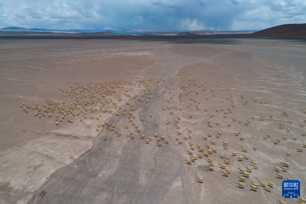 遷徙途中的藏羚羊(6月13日攝)。新華社記者 晉美多吉 攝