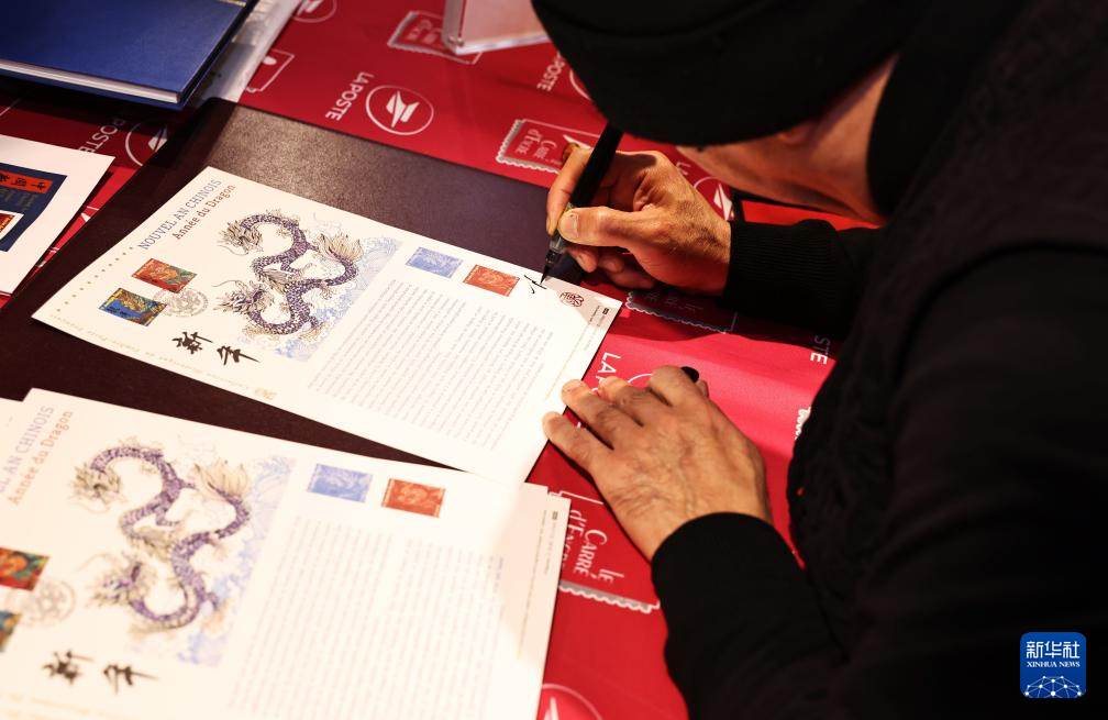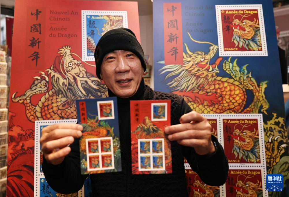 這是1月26日在法國巴黎拍攝的龍年生肖紀(jì)念郵票。新華社記者 高靜 攝