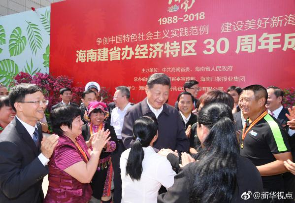 13日上午,習(xí)近平總書記在??谑袇⒂^了海南建省辦經(jīng)濟(jì)特區(qū)30周年成就展,對30年來特別是黨的十八大以來海南經(jīng)濟(jì)社會(huì)發(fā)展成就給予肯定。他指出,貫徹黨中央精神不是喊口號(hào),要結(jié)合當(dāng)?shù)貙?shí)際、經(jīng)過深入調(diào)研形成符合黨中央精神的一系列具體舉措,并在實(shí)施中早見成效、大見成效。