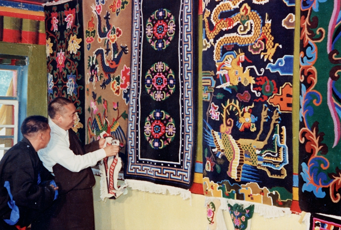 1982年7月,十世班禪大師視察拉薩團結卡墊生產(chǎn)合作社。劉麗嘉攝