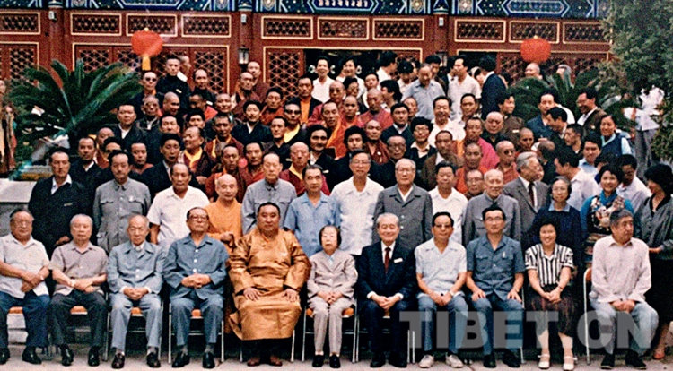參加中國藏語系高級佛學(xué)院成立大會的全體領(lǐng)導(dǎo)與師生合影。中國藏語系高級佛學(xué)院提供