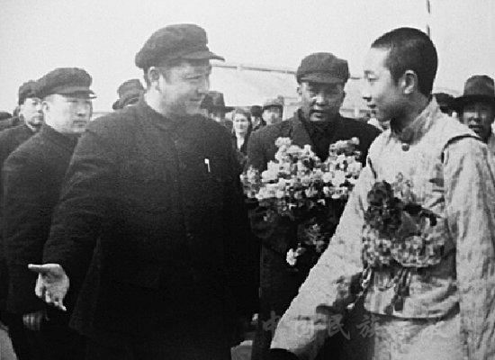圖為1951年4月22日,習(xí)仲勛(前左)率領(lǐng)西北軍政代表熱烈歡迎途經(jīng)西安赴北京的十世班禪(前右)。 圖片來源:中國(guó)網(wǎng)