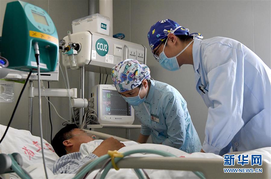 劉光耀(右一)和喬冰(右二)在河南省直第三人民醫(yī)院急重癥醫(yī)學(xué)中心病房?jī)?nèi)詢問(wèn)病人情況(4月26日攝)。劉光耀和喬冰是河南省直第三人民醫(yī)院急重癥醫(yī)學(xué)中心的護(hù)士,也是一對(duì)“90后”情侶。新冠肺炎疫情發(fā)生后,他們一起報(bào)名申請(qǐng)到武漢一線支援。新華社記者李安攝