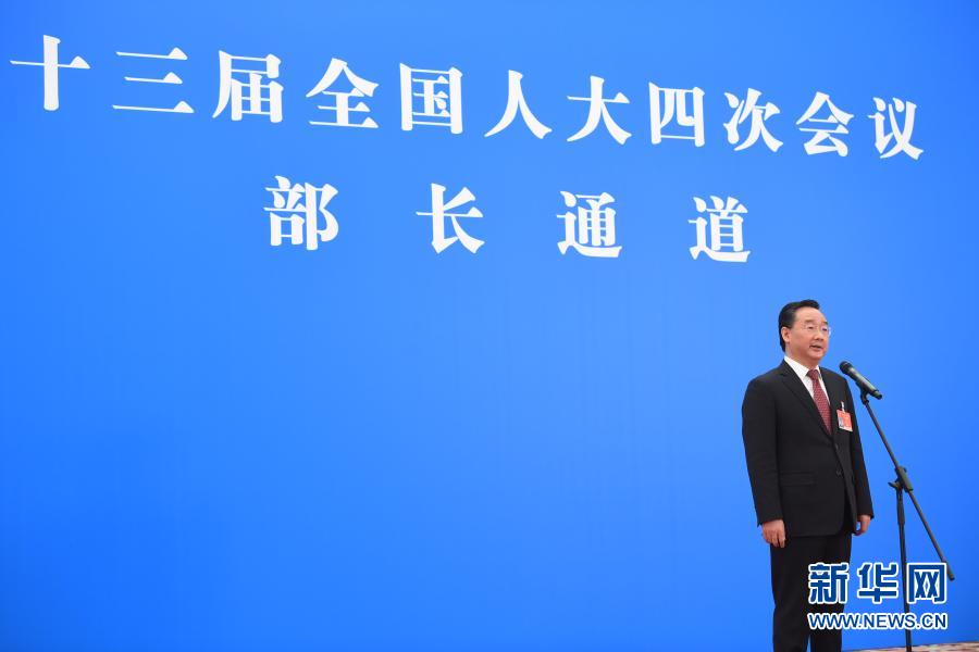 3月5日,第十三屆全國人民代表大會第四次會議舉行首場“部長通道”采訪活動。這是財(cái)政部部長劉昆通過網(wǎng)絡(luò)視頻方式接受采訪。新華社記者 陳曄華 攝