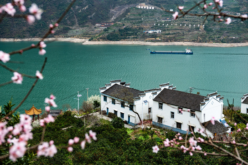 這是2021年2月27日在三峽庫(kù)區(qū)秭歸縣屈原鎮(zhèn)西陵峽村拍攝的鮮花盛開(kāi)的臍橙園。湖北省宜昌市秭歸縣在建設(shè)美麗鄉(xiāng)村中,因地制宜,在臍橙園里種植桃樹(shù)、李樹(shù)等果樹(shù)。