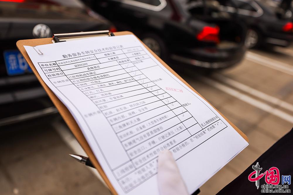 專業(yè)檢查人員逐一對(duì)車輛進(jìn)行檢查,大燈、雨刷、遠(yuǎn)光燈、剎車每項(xiàng)都要細(xì)心檢測(cè)并做記錄。中國(guó)網(wǎng)記者 鄭亮攝