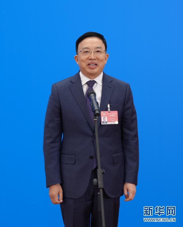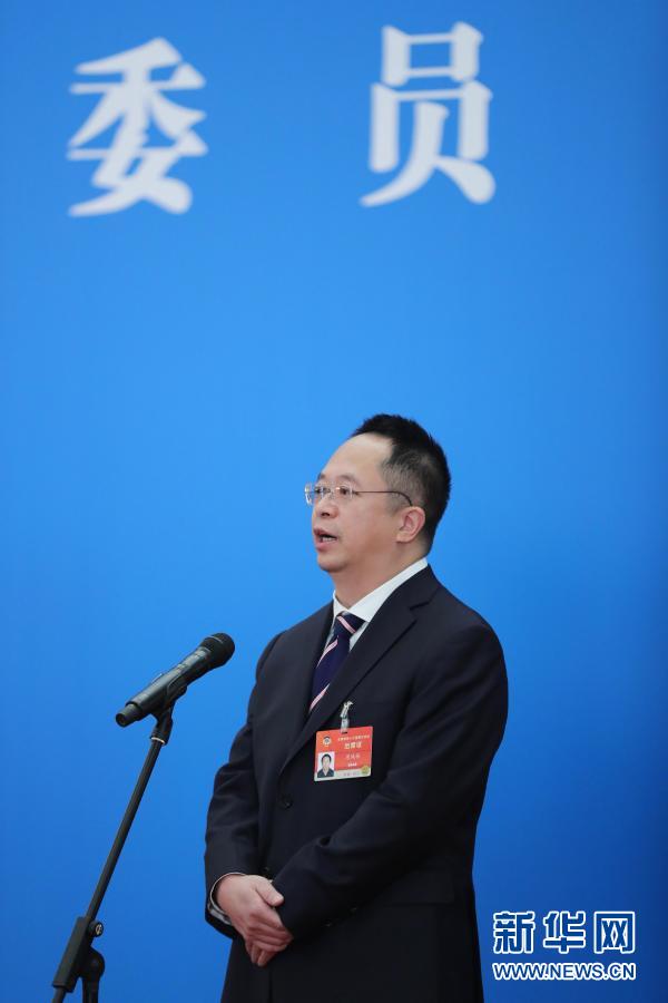 3月4日,全國政協(xié)十三屆四次會議第一場“委員通道”采訪活動在北京人民大會堂新聞發(fā)布廳舉行。這是全國政協(xié)委員朱征夫通過網(wǎng)絡(luò)視頻方式接受媒體采訪。新華社記者 李賀 攝