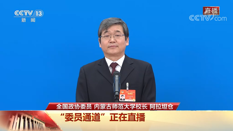 今天下午,在全國政協十三屆四次會議第三場“委員通道”上,全國政協委員、內蒙古師范大學黨委副書記、校長阿拉坦倉表示,如今的內蒙古,已從過去只有天蒼蒼、野茫茫、風吹草低見牛羊,發(fā)展到現在有繁華的城市、快速發(fā)展的經濟和飛馳的高鐵。在發(fā)展過程中,民族團結的理念深深地種在每一個內蒙古人的心里。