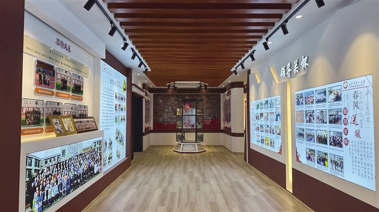紅領(lǐng)巾講解員楚成白姆指著老照片介紹道:“這是學生當時加入少先隊時的情景,這是學校成立時的教室畫面,這張是建校初期教師自編的教材圖片?!痹谏鲜兰o七八十年代,學校組織學生成立了腰鼓隊、舞蹈隊等,學生們經(jīng)常登上大型活動的舞臺,用精彩的文藝表演展現(xiàn)著青春風采。